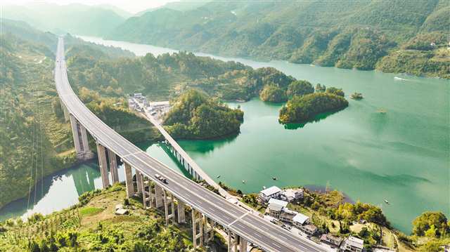 12月5日,酉陽縣龔灘鎮(zhèn),渝湘復(fù)線高速路蜿蜒鋪展,與碧綠的江水、斑斕的山川、和美的村寨交相輝映(無人機(jī)照片)。 近年來,酉陽縣大力推進(jìn)交通基礎(chǔ)設(shè)施建設(shè),構(gòu)建形成以高速、鐵路、省道、國道和縣鄉(xiāng)公路為一體的骨干交通路網(wǎng),助力地區(qū)經(jīng)濟(jì)發(fā)展和鄉(xiāng)村全面振興?!?/p>