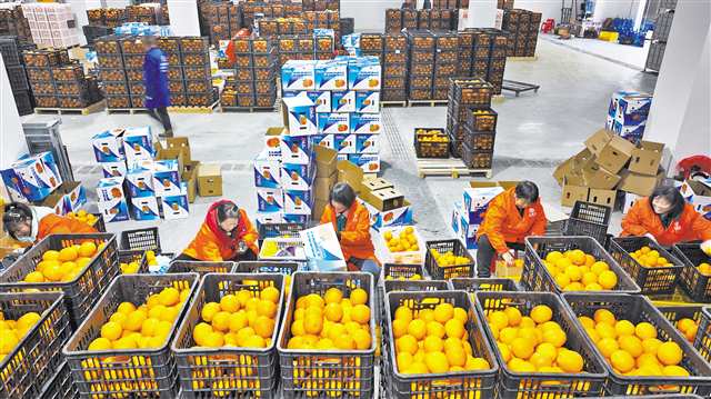 12月8日,秀山縣洪安鎮(zhèn)鄉(xiāng)村振興產(chǎn)業(yè)示范園,工人們正在打包臍橙。 連日來,洪安鎮(zhèn)臍橙大面積豐收,工人們抓緊時間轉(zhuǎn)運(yùn)、分揀、打包臍橙,發(fā)往海外市場?!?/p>