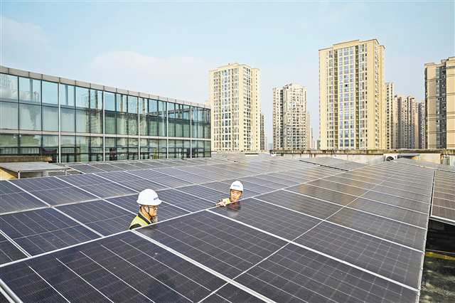 12月10日,銅梁區(qū)市民服務(wù)和營商環(huán)境促進(jìn)中心,工作人員在檢查屋頂光伏面板。 今年1月,銅梁區(qū)市民服務(wù)和營商環(huán)境促進(jìn)中心推行能源費(fèi)用托管項(xiàng)目。…