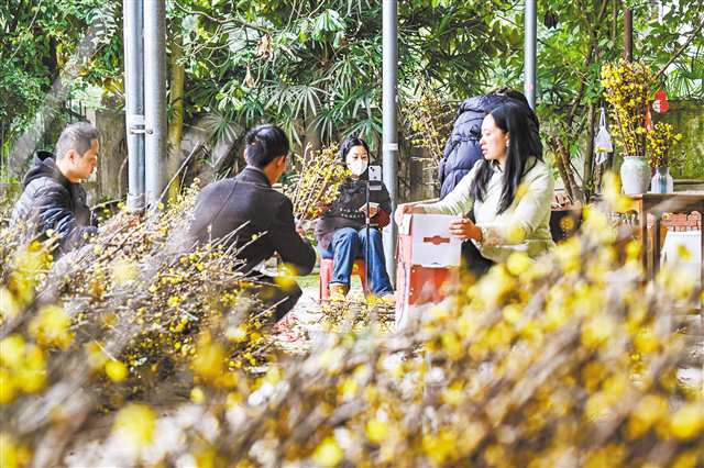 12月14日,北碚區(qū)靜觀鎮(zhèn)素心村,工作人員一邊忙著將香氣濃郁的蠟梅花打包發(fā)貨,一邊在現(xiàn)場展開直播向網(wǎng)友介紹當(dāng)?shù)叵灻坊ǖ奶厣?連日來,北碚蠟梅花競相綻放,素心村等地線上銷售熱度高漲,村民紛紛通過直播等方式推介鮮切蠟梅,來自全國各地的訂單量持續(xù)攀升。…