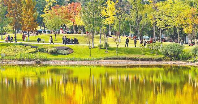 11月26日,大渡口區(qū)心湖公園,彩林與湖泊相映成趣,不少市民在湖邊散步、休閑。近日,各地色彩斑斕的樹(shù)木將山城裝扮得美麗如畫(huà)?!?/p>