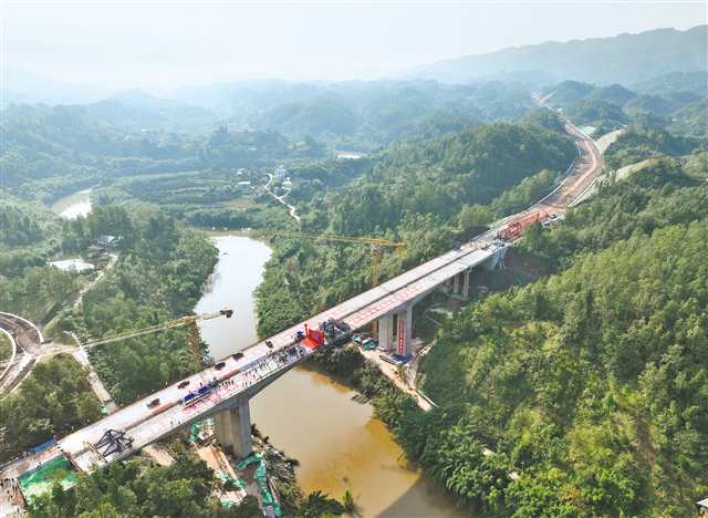 11月21日,重慶至赤水至敘永高速公路(重慶段)筍溪河大橋順利合龍。該大橋位于江津區(qū)嘉平鎮(zhèn)寒坡村,全長276米,是我市首座波形鋼腹板連續(xù)剛構橋?!?/p>
