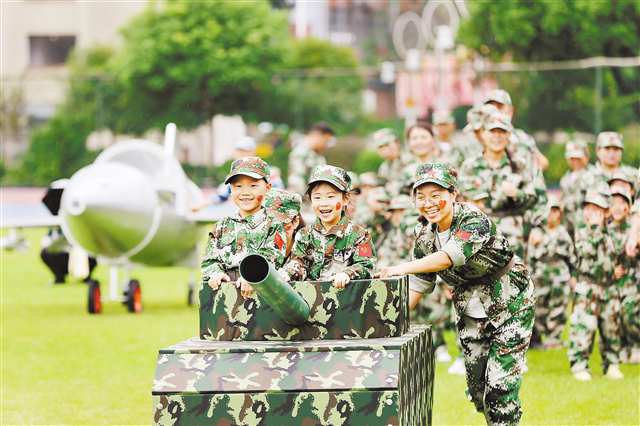 10月13日,萬盛經(jīng)開區(qū)萬盛街道潤江幼兒園,小朋友們正在進(jìn)行軍事技能挑戰(zhàn)比賽。 當(dāng)日,該幼兒園開展“童心向黨 強(qiáng)國有我”國防教育親子活動?!?/p>