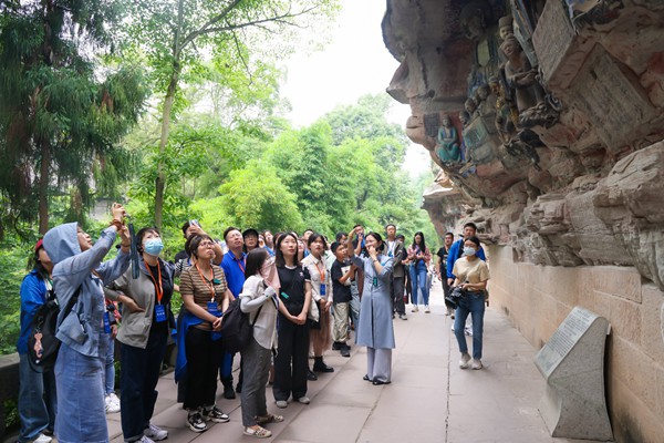 在此基礎(chǔ)上,大足堅(jiān)持“走出去”與“引進(jìn)來”相結(jié)合,全力唱響“精美的石刻會(huì)說話”,不斷提升大足石刻國(guó)際影響力。