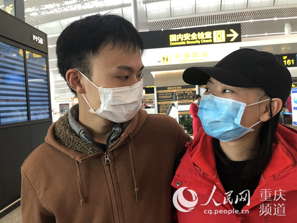 人民網(wǎng)重慶2月19日電(胡虹)19日下午,在重慶江北機場T3航站樓候機廳,弟弟趙紅松抱著姐姐趙雅嵐,眼眶紅紅地說:“姐姐,你一定要好好照顧自己,等你平安歸來那天,我還在這里等你!壁w雅嵐是重慶南岸區(qū)人民醫(yī)院的護士,作為重慶第十二批支援湖北醫(yī)療隊的隊員之一,她乘坐下午5點多的飛機前往武漢。當(dāng)天趙紅松代表全家人來給姐姐送行。