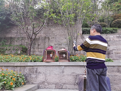 雖然市場已經(jīng)關(guān)閉,記者在人民公園看到,在公園遛鳥的市民還不少。正在遛鳥的張衛(wèi)國一邊和朋友交流心得,一邊招呼著在公園里和小朋友一起玩耍的孫子。他告訴記者,自己就住在附近,平時喜歡養(yǎng)鳥和逛花鳥市場,更喜歡和朋友一起提著鳥籠子在公園里遛鳥!拔以谶@里遛鳥二十幾年了,可以說有花鳥市場的時候就在這兒!睆埿l(wèi)國說,人民公園環(huán)境好,原來從市場走進公園的綠蔭下就是喝壩壩茶的地方,擺了很多桌椅,樹上掛了很多鳥籠,都是一些老朋友聊聊天、敘敘舊。