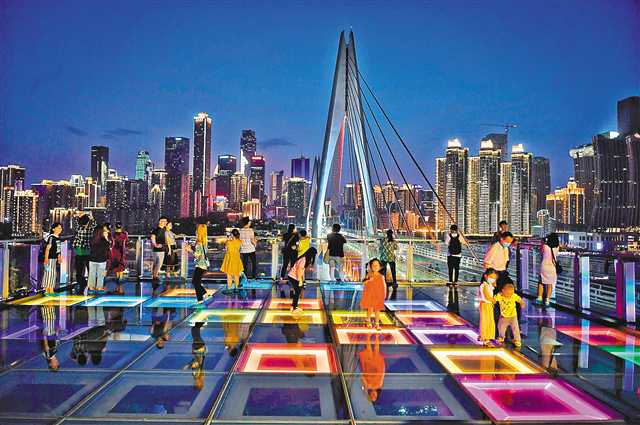 5月4日,市民在南岸龍門浩老街觀景平臺欣賞重慶夜景。特約攝影 郭旭