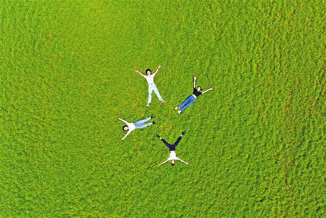 5月3日早上,巴南區(qū)木洞鎮(zhèn)中壩島上,幾位市民躺在青草叢中曬太陽、聞草香。這片草原面積達(dá)1000多畝,“五一”假期吸引不少市民乘船上島。特約攝影 鐘志兵