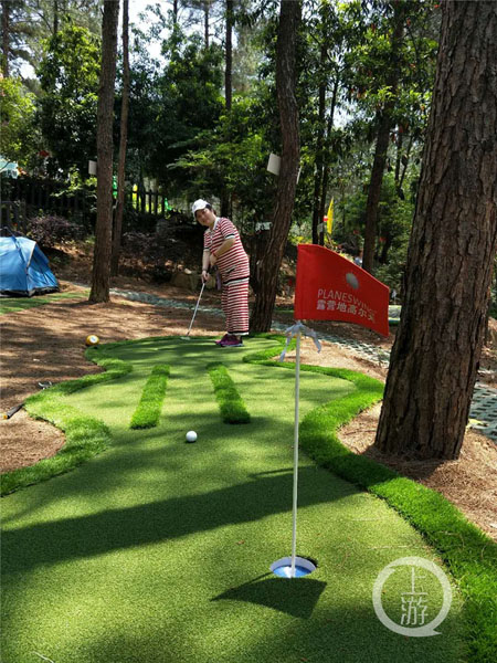 位于渝北玉峰山的客樂(lè)得房車營(yíng)地,這個(gè)假期也迎來(lái)了小高潮!拔覀冞@里可以玩飛躍叢林、有智能CS,林下高爾夫、松果樂(lè)園等游玩項(xiàng)目,今年五一小長(zhǎng)假,整個(gè)玉峰山人流量猛增,1—3號(hào),餐飲和住宿幾乎都爆滿,大部分客人都是家庭帶孩子前來(lái)游玩!