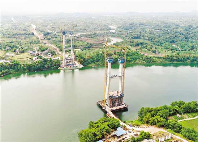 合安高速重慶段另一控制性工程——崇龕瓊江大橋,正在開展防撞護欄安裝等橋面系施工。涪江特大橋主墩正在進行現(xiàn)澆梁與T梁架設。嘉陵江大橋已于5月初完成6號主塔封頂。(記者 楊永芹)