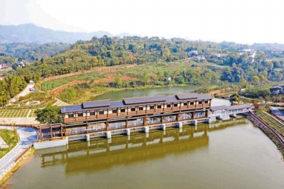 古香古色的廊橋為碑口水庫增添了幾分韻味