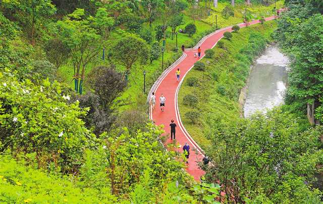 5月24日,市民在新建成的沙坪壩渝碚路清水溪休閑濕地公園健身散步玩耍。據(jù)了解,此前這里是一片荒坡和一條臭水溝。去年10月,渝碚路街道對該片區(qū)進(jìn)行改造,占地4.2萬平方米、植被豐富、水清岸綠的清水溪休閑濕地公園于今年5月初建成并對市民開放,給附近多個小區(qū)的居民提供了一個健身休閑、觀光游玩的好去處。