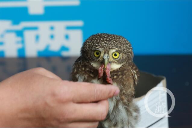 5月27日早上7點多,一名8歲左右的小男孩在家人的陪同下,捧著一個紙盒來到江津區(qū)公安局柏林派出所,他對民警說:“警察叔叔,這是我在路邊撿的,把它交給你們!泵窬豢矗凶永镅b著一只小貓頭鷹。