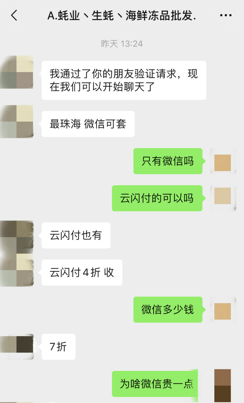 與自稱海鮮批發(fā)的商戶聊天截圖