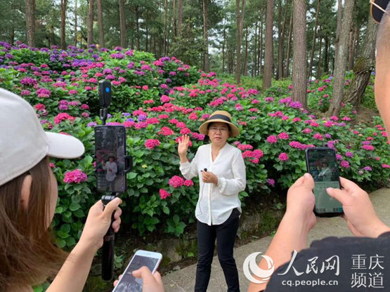 通過(guò)直播推廣涪陵繡球花。涪陵區(qū)文旅委供圖
