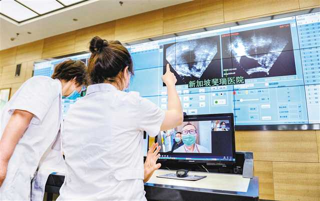 6月3日,在位于兩江新區(qū)的重慶海扶醫(yī)療科技股份有限公司,醫(yī)生通過中新數(shù)據(jù)通道和新加坡斐瑞醫(yī)院連線,在B超監(jiān)控下對一名子宮腺肌癥患者進行海扶刀術(shù)前遠程會診。