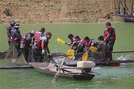 工人在捕撈“萬峰生態(tài)魚” 受訪者供圖