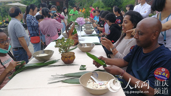人民網(wǎng)重慶6月14日電 包粽子、打糍粑、制作五谷貼畫、體驗(yàn)中國書法,14日,2020年“老外@Chongqing·體驗(yàn)非遺暨老外游鄉(xiāng)村”第五期活動走進(jìn)巴南區(qū)石灘鎮(zhèn),通過形式多樣、內(nèi)容豐富的交流,來自韓國、埃塞俄比亞等國家和地區(qū)的外國友人,親身體驗(yàn)了巴南生態(tài)文明和鄉(xiāng)村振興的建設(shè)成果。