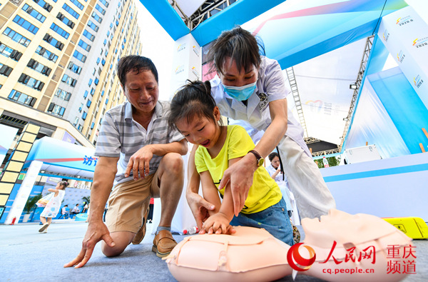 市民學(xué)習(xí)體驗(yàn)心肺復(fù)蘇項(xiàng)目。重慶市應(yīng)急管理局供圖