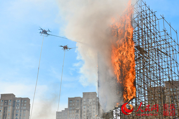 此次演練中,多機(jī)種多功能無(wú)人機(jī)系統(tǒng)承擔(dān)了火情偵查、破窗投送防毒面具和防火服、破窗投送消防水帶、撲滅明火等多重任務(wù),為科學(xué)制定救援方案、安全解救被困人員、迅速有效滅火提供了有力的硬件支撐。整個(gè)演練中,應(yīng)急救援隊(duì)伍展現(xiàn)了中低層建筑消防登高平臺(tái)地面救援,中高層無(wú)人機(jī)協(xié)同救援,超高層樓頂建立空中生命救援通道,以及地面消防和無(wú)人機(jī)協(xié)同實(shí)施高樓外立面滅火等多個(gè)演練場(chǎng)景。