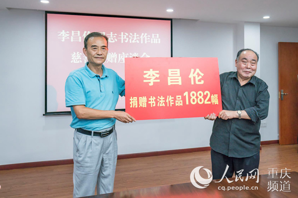 人民網(wǎng)重慶6月16日電(胡虹)6月15日、 70歲愛(ài)心書法家李昌倫將一生積攢的1882件自創(chuàng)作品(其中已裝裱70幅,未裝裱1812幅),全部無(wú)償捐贈(zèng)給重慶市慈善總會(huì),用于社會(huì)慈善事業(yè)。