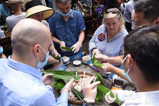 人民網重慶6月24日電 24日一早,重慶巴南區(qū)豐盛古鎮(zhèn)熱鬧了起來,由中共重慶市委宣傳部(市政府新聞辦)、市文化旅游委和巴南區(qū)委、區(qū)政府聯(lián)合主辦,巴南區(qū)委宣傳部、區(qū)文化旅游委、團區(qū)委、豐盛鎮(zhèn)共同承辦的“2020年老外@Chongqing·體驗非遺暨我們的節(jié)日·端午活動”在一首歡快的木洞山歌中拉開帷幕。多國駐渝總領事館的嘉賓,以及交通大學留學生,在渝工作、生活的18國外國友人參加活動。