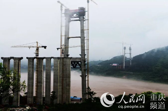 油溪長江大橋南橋墩封頂現(xiàn)場。江津區(qū)委宣傳部供圖