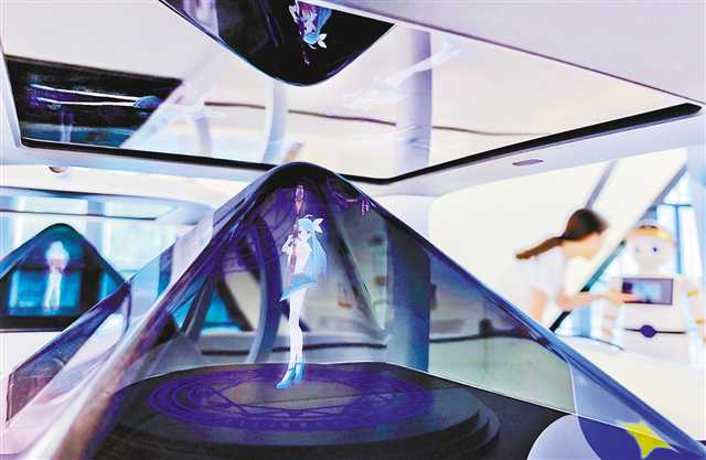 7月2日,位于兩江新區(qū)的兩江機(jī)器人展示中心,在首屆智博會(huì)上給市民留下深刻印象的3D全息投影智能機(jī)器人MINI版正在展示。