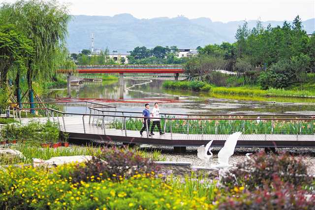 7月9日,南岸區(qū)茶園新區(qū)苦竹溪河畔,生態(tài)優(yōu)美的自然景觀讓經(jīng)過的市民心曠神怡。