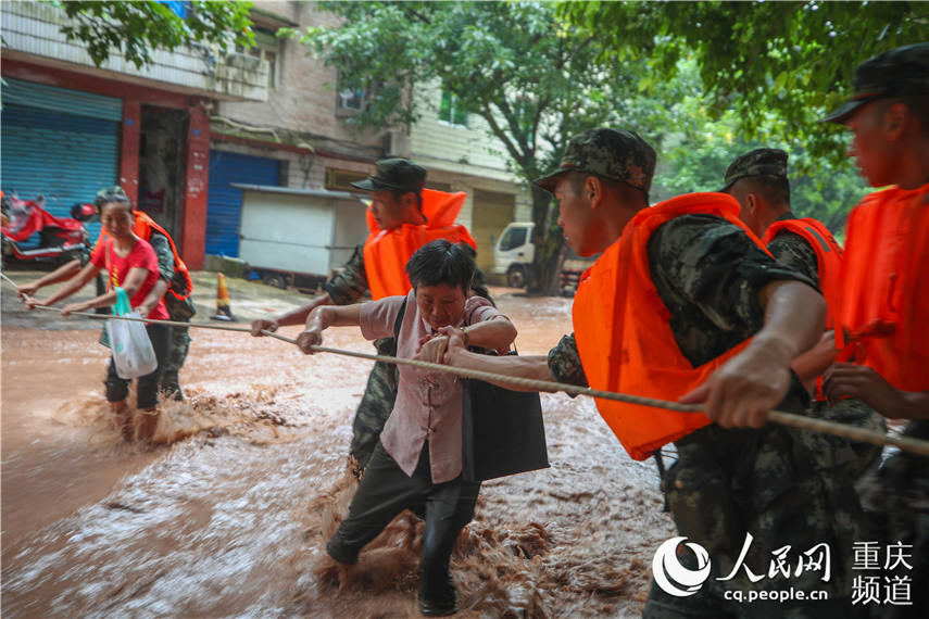 武警官兵協(xié)助群眾轉(zhuǎn)移至安全地域。李東攝
