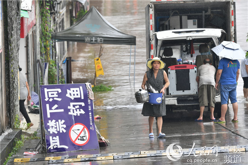 南岸區(qū)海棠溪碼頭停車場(chǎng)已經(jīng)完全淹沒(méi),較低洼地帶商戶正在有序安全撤離。郭旭 攝