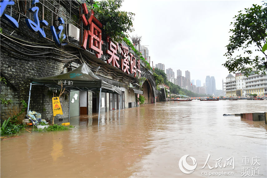下午,記者在煙雨公園看到,江水已漫上海棠溪碼頭。工作人員正有序組織低洼地帶的商鋪撤離!拔覀兩啼伒乃晃吹骄渌痪鸵M(jìn)水。這一次,南濱路管委會(huì)通知得早,還做了應(yīng)急演練,所以,我們?cè)缭缇妥龊昧藴?zhǔn)備!彪s貨店老板說(shuō)。儲(chǔ)存的貨物早搬走了,今天只需把桌椅、冰箱搬走即可。