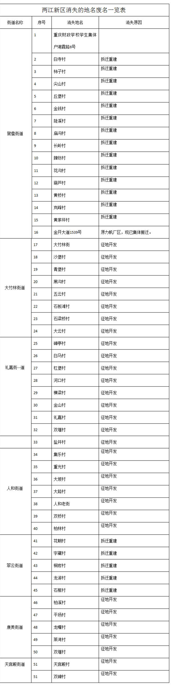 兩江新區(qū)這些地址已消失 戶口人員需辦理遷移