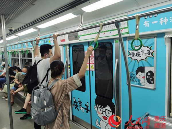 乘客打卡“重慶言子”主題專列。重慶交通開(kāi)投軌道集團(tuán)供圖