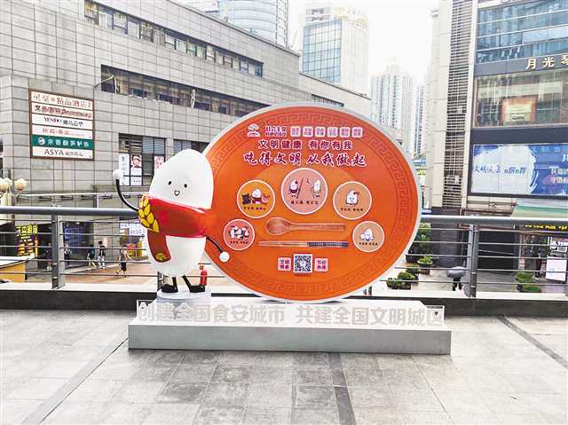 記者在觀音橋商圈新港城的美食街看到,碩大的“米寶寶”立在路邊,很萌很可愛。一旁醒目的紅色圓盤上,鑲嵌有木筷、木勺,張貼著“米寶寶”主題漫畫,提醒市民“不浪費、吃光盤”“管住嘴、拒野味”。路過的市民陳菁告訴記者,乖萌的“米寶寶”引人注目,這樣的宣傳方式更容易給人留下印象。
