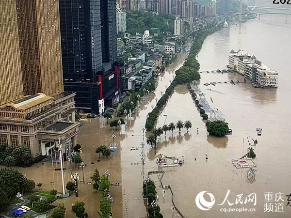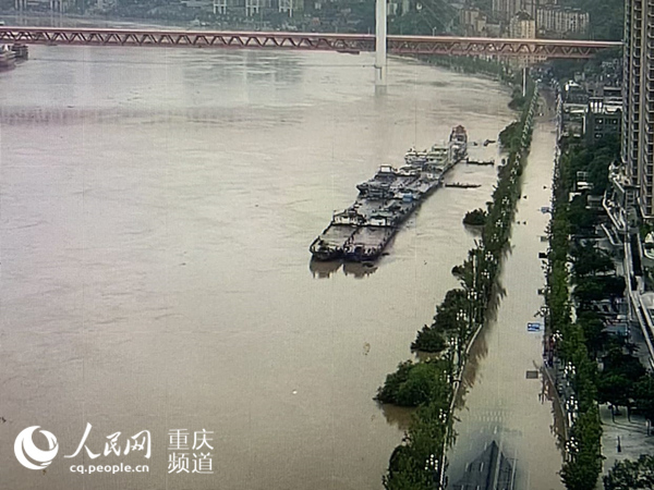 洪峰過境重慶南濱路被淹 禁止社會(huì)車輛通行