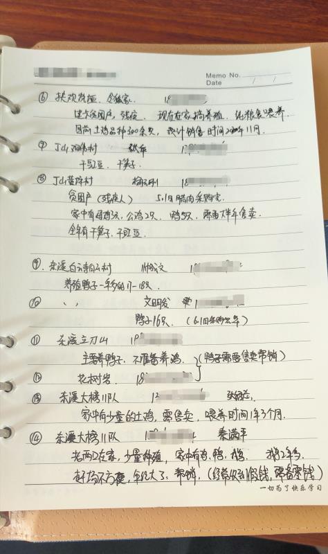 趙娜的筆記本上密密麻麻記錄著村民種養(yǎng)農(nóng)副產(chǎn)品的信息。受訪者供圖