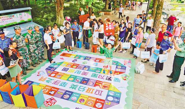 8月17日,江北區(qū)寸灘街道金科廊橋水岸,社區(qū)居民參加垃圾分類游戲。當(dāng)日,該區(qū)“文明城市共創(chuàng)建,垃圾分類我先行”垃圾分類進社區(qū)主題宣傳活動舉行,20多家物業(yè)單位工作人員和300多位社區(qū)居民在志愿者帶領(lǐng)下學(xué)習(xí)垃圾分類知識。