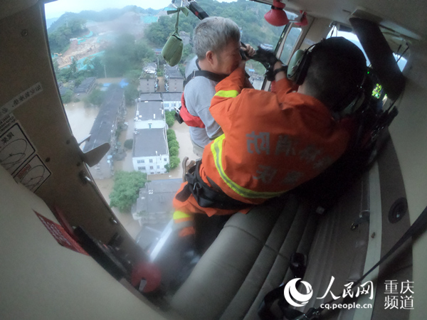 重慶出動直升機營救被困市民。重慶市航空應(yīng)急救援總隊供圖