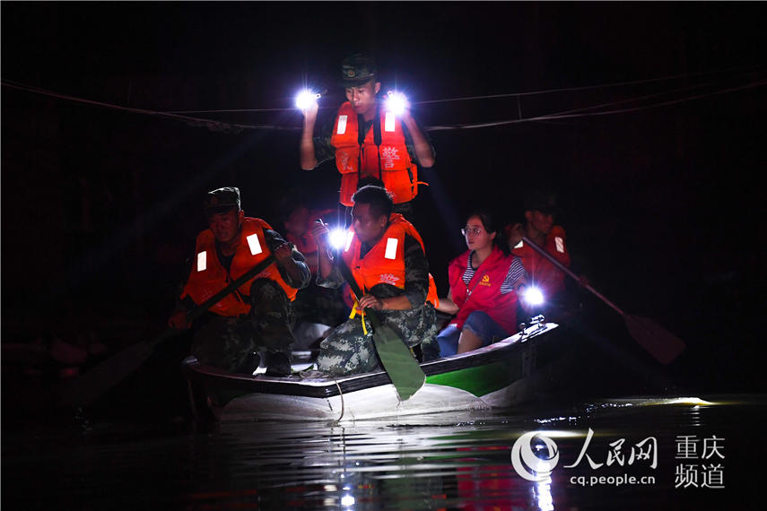 8月19日,在重慶北碚區(qū)童家溪鎮(zhèn),武警官兵正在搜尋轉(zhuǎn)移被困人員。王肸攝
