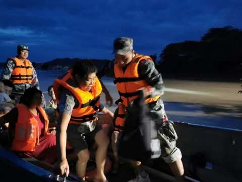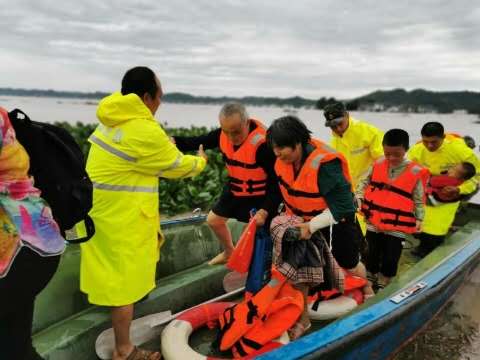 雙江鎮(zhèn)黨員干部依靠船舶轉(zhuǎn)移受困群眾。潼南區(qū)委組織部供圖