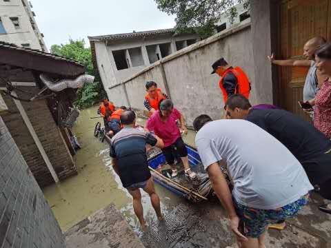 桂林街道黨員干部緊急轉(zhuǎn)移受困群眾。潼南區(qū)委組織部供圖