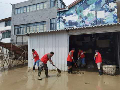 洪水漸退,受災區(qū)域聚集大量淤泥,全區(qū)各個部門單位迅速組建黨員志愿隊,幫助受災地區(qū)開展災后重建,黨員干部沖鋒在前、聚心凝力,人民群眾備受鼓舞、同向而行,主動參與災后重建志愿服務。