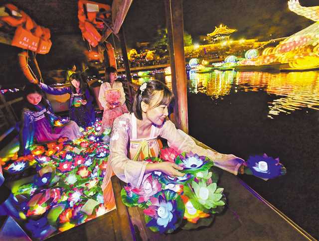 8月22日,榮昌區(qū)萬靈古鎮(zhèn),身著夏布漢服的女孩在瀨溪河上放河燈許心愿。當(dāng)日,榮昌第七屆七夕河燈旅游文化節(jié)開幕,本屆旅游文化節(jié)分為夏夜運動、室內(nèi)外音樂節(jié)、淘寶集市、點亮繁星四大板塊,將傳統(tǒng)與流行相結(jié)合,讓市民在歡度周末的同時感受傳統(tǒng)文化的魅力。首席記者 崔力 攝/視覺重慶