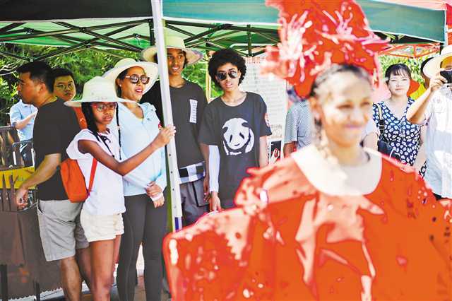 8月23日,重慶市巴南區(qū)接龍鎮(zhèn)龍泉谷度假區(qū),“愛在七夕浪漫接龍——2020年老外@Chongqing·體驗非遺暨我們的節(jié)日·七夕”活動現(xiàn)場,外國友人穿上剪紙衣裳吸引了同伴目光。 記者 謝智強 攝/視覺重慶