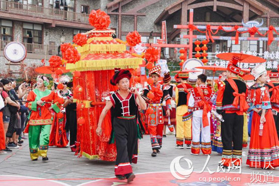 人民網重慶8月30日電 8月29日至30日,2020“世界苗鄉(xiāng)·養(yǎng)心彭水”七夕相親會暨第三屆苗族集體婚禮,在國家AAAA級景區(qū)彭水摩圍山舉行,來自全國各地的52對新人齊聚摩圍山,體驗苗族婚禮。