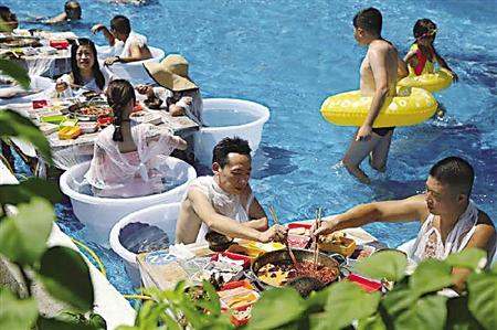 繼水上麻將之后,重慶人又玩出新花樣。28日,重慶高溫持續(xù),重慶一景區(qū)卻推出“水上火鍋”讓游客體驗。該新聞上了微博熱搜榜,閱讀超過2億人次,近萬人參與討論。