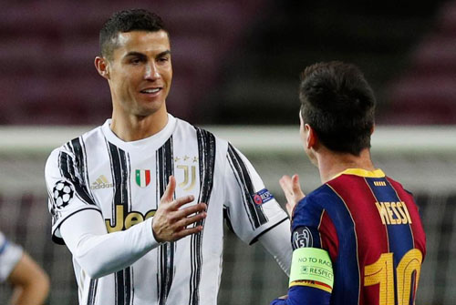 12月8日,尤文圖斯隊(duì)球員克·羅納爾多(左)和巴塞羅那隊(duì)球員梅西賽前致意。