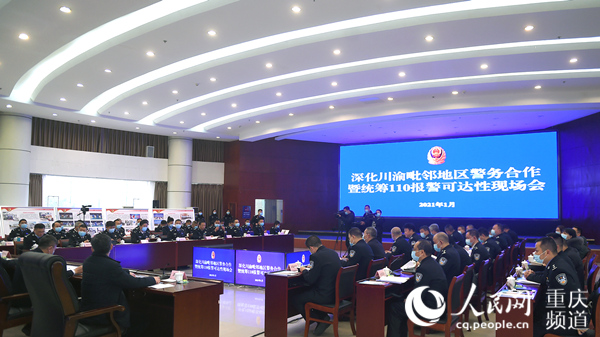 深化川渝毗鄰地區(qū)警務(wù)合作暨統(tǒng)籌110報(bào)警可達(dá)性現(xiàn)場(chǎng)會(huì)現(xiàn)場(chǎng)。 重慶市公安局供圖