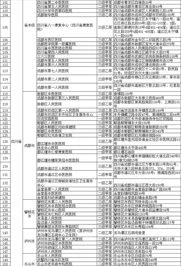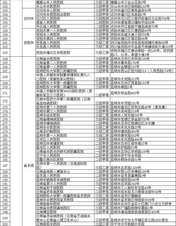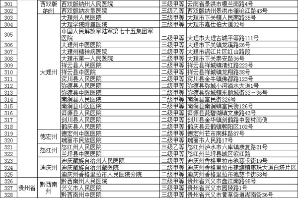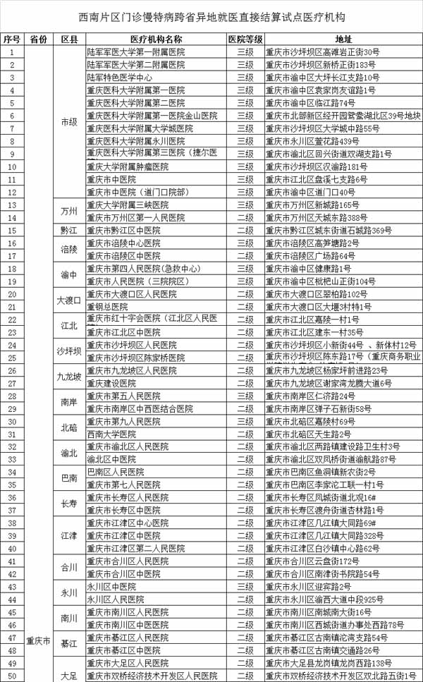 西南片區(qū)門診慢特病跨省異地就醫(yī)直接結(jié)算試點醫(yī)療機構(gòu):
